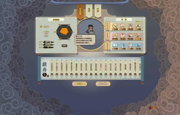 4、建议开局带四个人,其中一个小人(是不是主要人物无碍)五维(除潜力外)必须到5,气感能力值(不是技能等级)在15以上,多多益善。有几个重要的能力,岐黄和丹器,能高则高,没有也可以,主要影响后面修行。