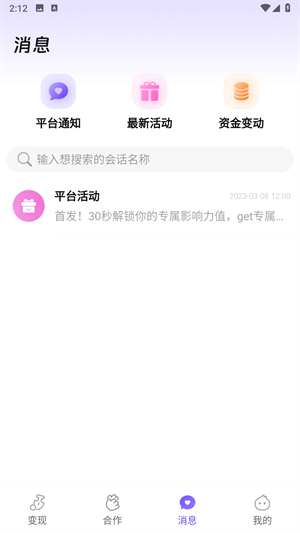 3、点开消息一栏,你能够看到相应的平台通知,还有一些活动等等。
