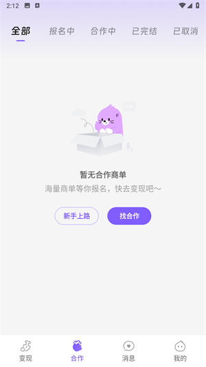 1、打开爱种草app,进入变现栏栏目,这里面有很多合作供你去选择。