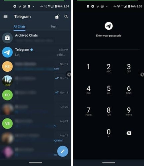 不要忘记,您还可以通过点击右上角的锁定选项来手动锁定Telegram。执行此作后,下次打开应用程序时,您需要使用 PIN 码或指纹。
