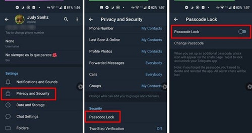为确保您的Telegram对话安全,请打开应用程序,然后点击左上角的三行菜单。前往个人设置,然后是密码锁选项。寻找密码锁 选项并将其打开。
