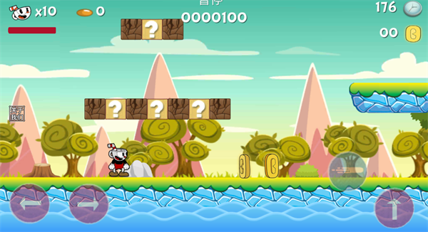 3、游戏玩法简单,操控茶杯头上下左右走动,收集更多金币,怪物出现时则发起进攻,打死后会成为金币。图中的方块可以被撞碎,有可能还会获得更多好用的道具,游戏右上角在倒计时,玩家需要在有效时间内通关,否则闯关失败。
