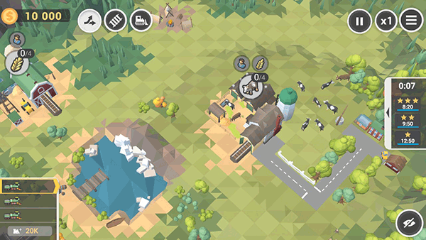 游戏的前几个关卡中,有完善的教学式任务,可以让玩家很快熟悉规则上手,即使之前从来没有玩过此类建设大亨游戏,也能迅速找到乐趣。每张地图难度不大,基本都能在最大时间范围内完成,不会卡在某关无法继续游戏,但如果追求完美5星过关,则需要仔细规划并反复尝试,可以说是既上手简单又有深度挑战性。