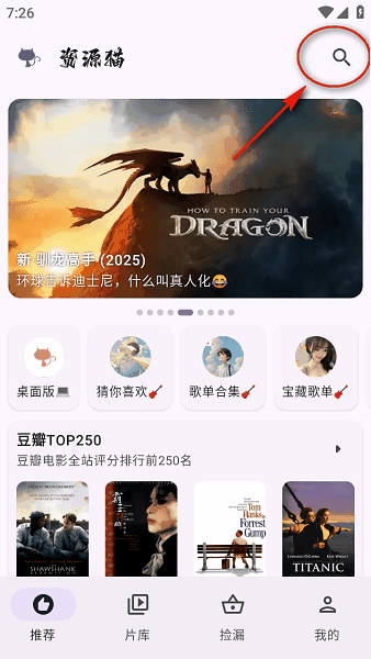 打开资源猫app后,点击右上角的放大镜图标,搜索要看的视频;