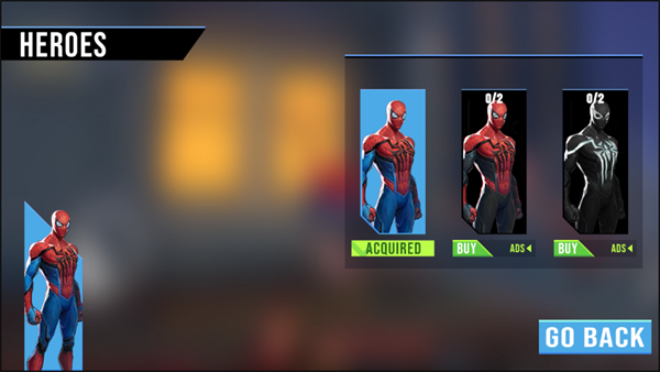 2、点击shop,我们能够购买全新的蜘蛛侠战衣。