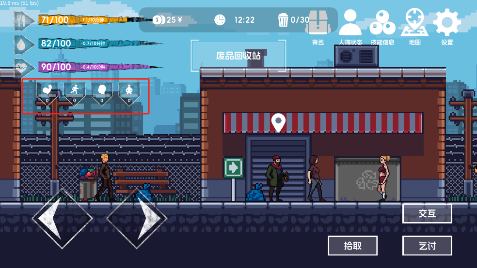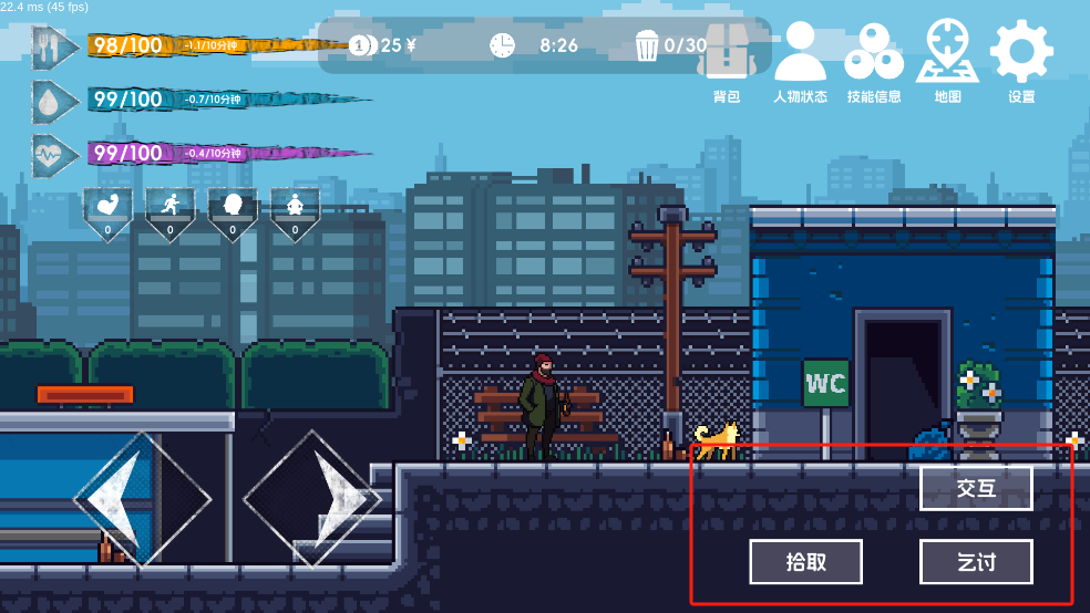 3、特殊的技巧:流浪汉可以通过不同的行为获得不同的经验,通过学习不同的生存技能来更好地在这座城市中讨生活。