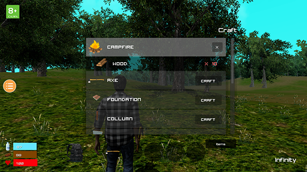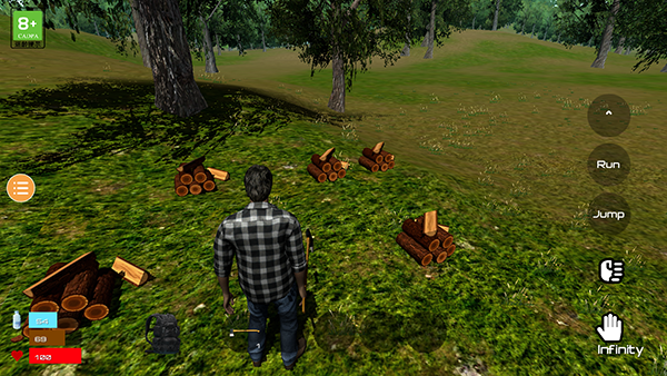 4、砍树可以获取木头可以生火,建房子等功能,要注意角色左下角健康状态及时补充。