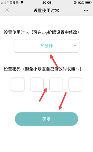 在页面直接设置护眼时长,输入密码,点击确定。