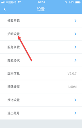 在设置界面,点击护眼模式。