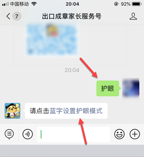 按提示,输入护眼,点击蓝字设置护眼模式。