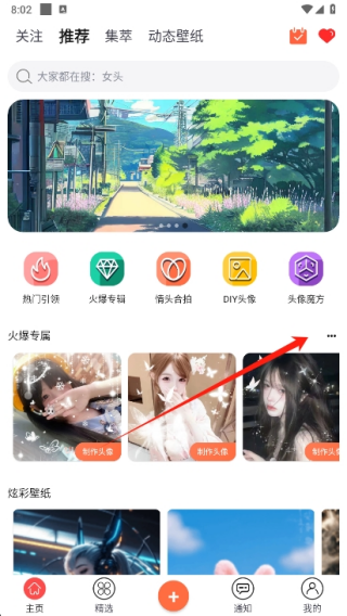 1、进入APP后,在首页火爆专属栏目,可以利用热门的模板来进行头像制作。