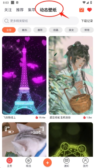 2、在上方“动态壁纸”中,用户可以挑选各类壁纸应用为你的手机壁纸。