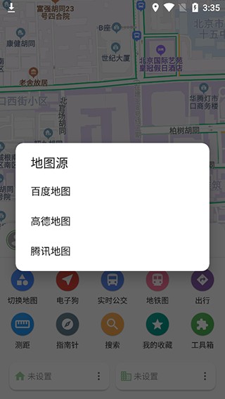 4、软件包含百度地图、高德地图、腾讯地图四大数据源,返回主界面,点击切换地图;