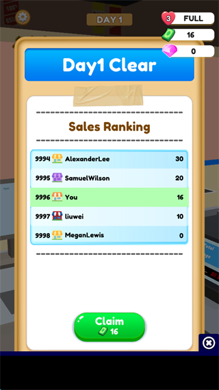 2、精心设计的超市场景和可爱的顾客角色,营造出温馨亲密的游戏氛围;