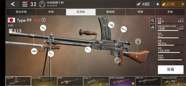 Type 99这把就是一开始提供的枪,我是靠这把撑到30级,过一些机枪类的任务,后续到了30级,就用DP-28代替它。