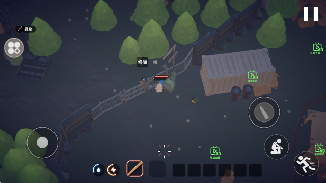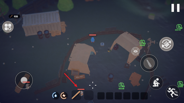 1、进入游戏后,左侧的摇杆控制移动,右侧还能够蹲下和加速。