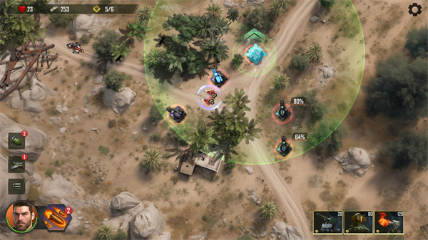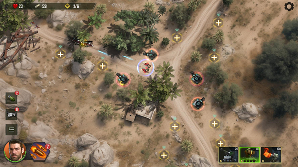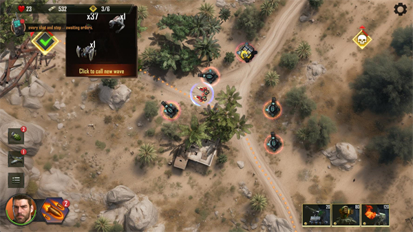 6、在屏幕左侧是玩家可以使用的战术支援,当消灭关卡里所有波次的敌人后就可以通关。