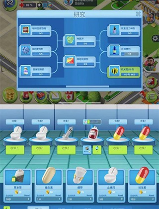 进入药厂和研究所。生产药品和补剂。可以进入全城补剂使用补剂,可以提高每个科室每个病人的健康值和快乐值。药品可以用于群体治疗,一次治疗多人