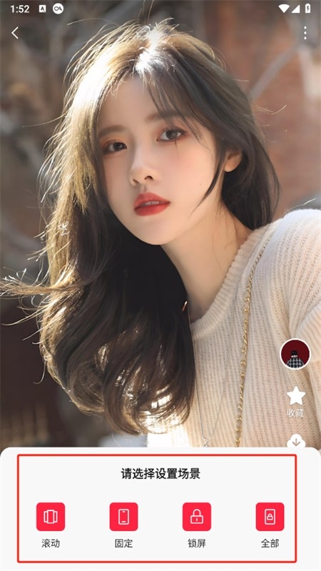 4、选择好自己喜欢的壁纸,点击进入壁纸详情页面,点击壁纸,选择好设置的场景即可设置,也可以直接下载图片