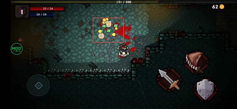 4、被击败的敌人会掉落金币与装备道具,操控角色靠近即可自动拾取;