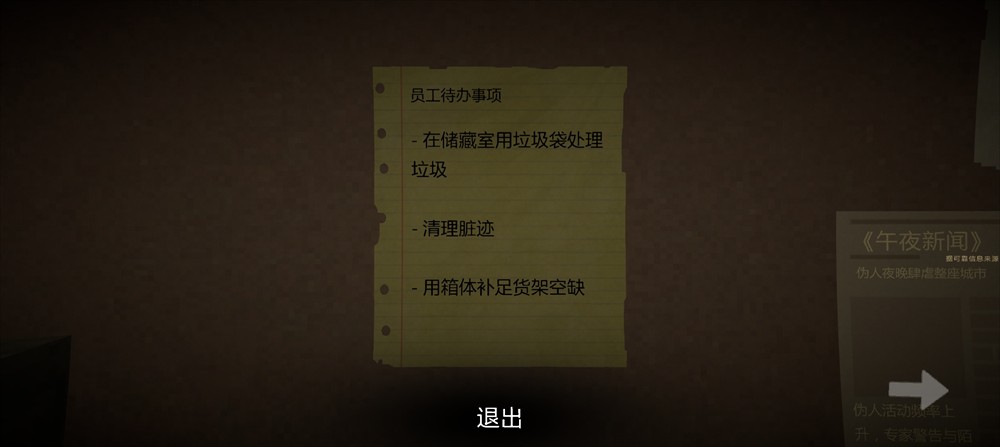 结局分支:根据收集的线索数量触发不同结局。完整收集可解锁真结局,揭示超市实为异界生物的孵化场。