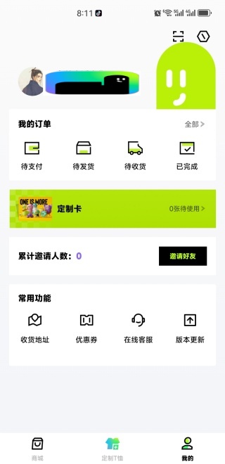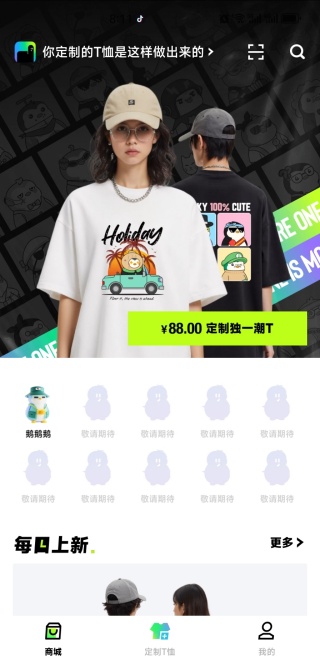 3、在主页可查看个人定制T恤定制,也可看到每日精选。