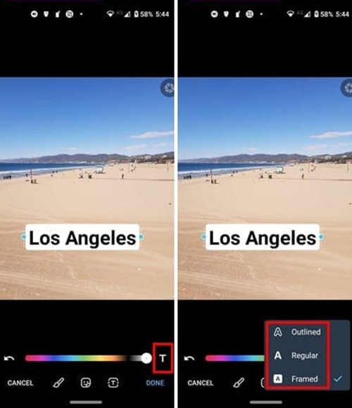 添加文本:顶部 “text” 选项可添加文本,点击屏幕放置文本到图像上。点击 “T” 从轮廓、规则、框架三种文本样式中选,选好样式后用滑块选颜色,实时查看效果,完成后点击 “完成” 按钮。