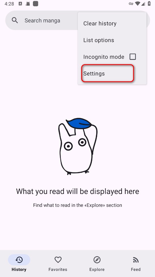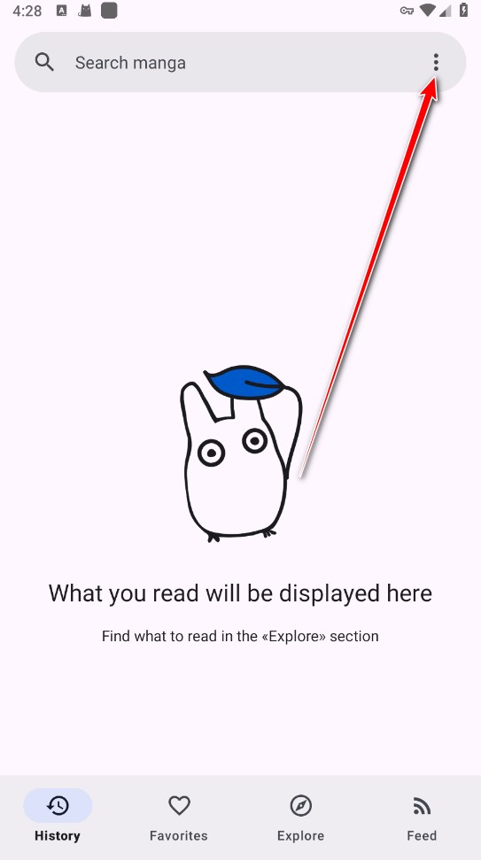 1、打开安装好的Kotatsu,点击搜索框的三个点