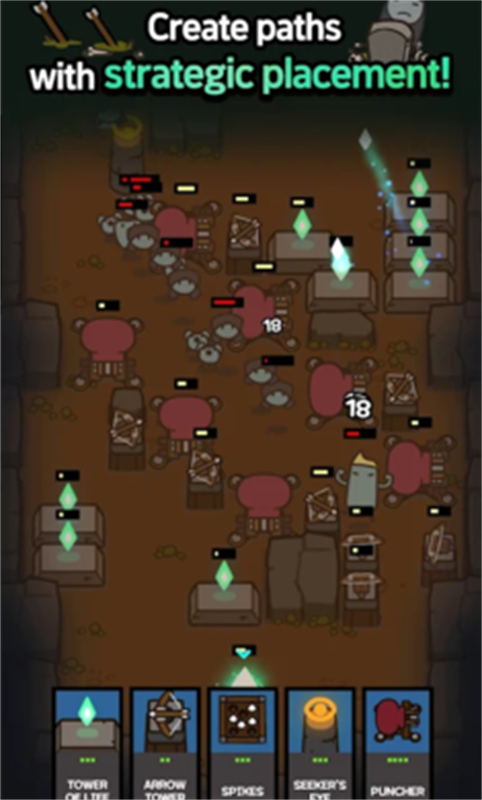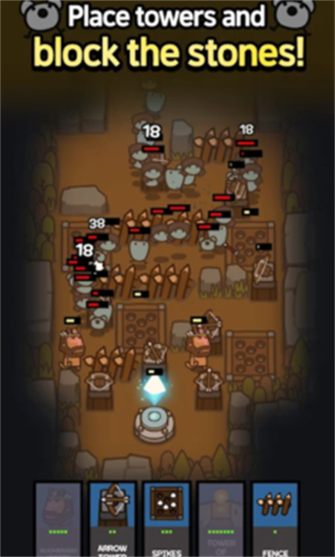 墓园塔防战这款游戏是一款策略对战手游,玩家要化身成生命之石的守护者,通过合理布置防御设施和障碍物,搭建起稳稳当当的防线,好在那群调皮又可爱的亡灵大军来袭时,保护生命之石不被邪祟弄脏。这游戏有很自由的障碍物布置玩法。