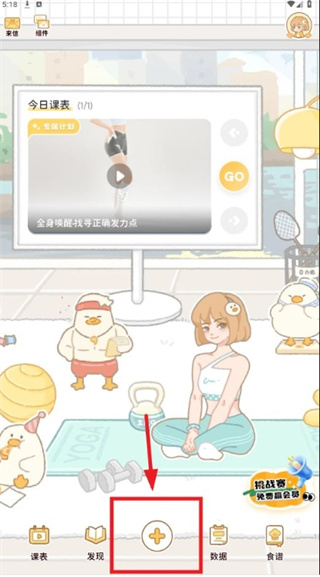 1、首先打开动起来鸭app主页,点击屏幕中间的添加按钮。