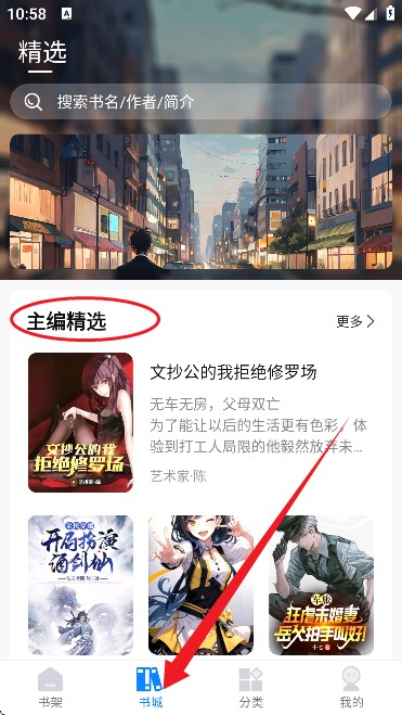2、进入到软件首页(书城),如图所示。这里有大量的精品热门小说资源推荐,