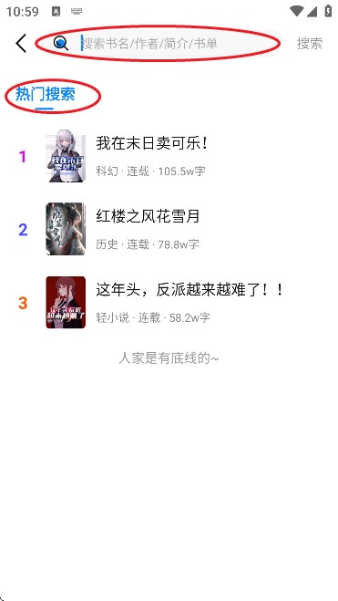 3、点击顶部的【搜索框】可以输入关键词进行精准搜索。而且能看到平台上的热门搜索,进而让你了解到网友们的追书风向。