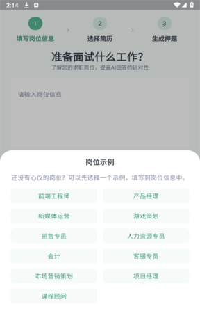 接下来进入软件,选择适合你的模拟面试岗位。