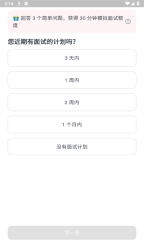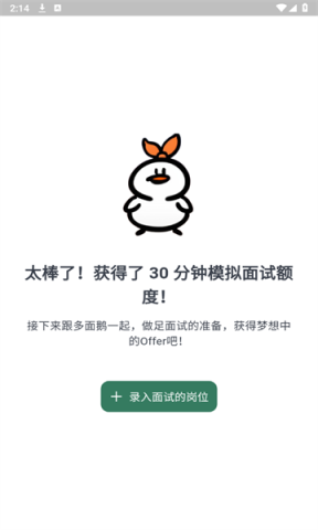 作为新用户,你会收到三十分钟的模拟面试时间,真的是太贴心了。