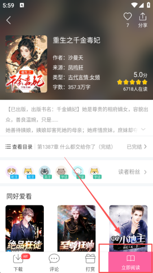 3、轻触“立即阅读”按钮,便可以开始欣赏这本小说的精彩内容。