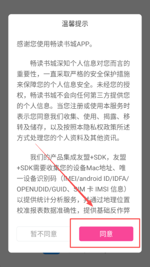 1、点击同意以进入应用程序,此步骤确保您已同意相关协议。
