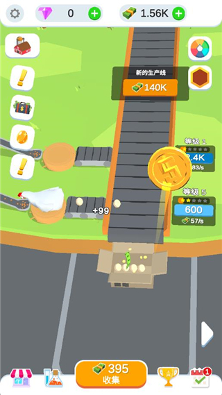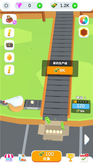 3、点击下方第三个收集按钮即可收集当前所赚取的钞票