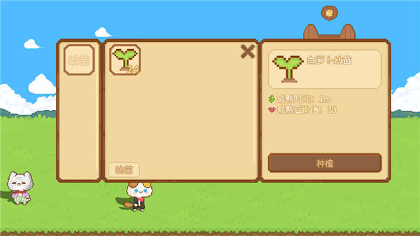 你可以在晨光微熹之时,撒一把种子,稍作等待,让它成长为一片菜园,一片花田,感受满满的丰收喜悦。摆摊售卖或加工你的作物,赚取村庄的建设资金,让可爱村不断繁荣!
