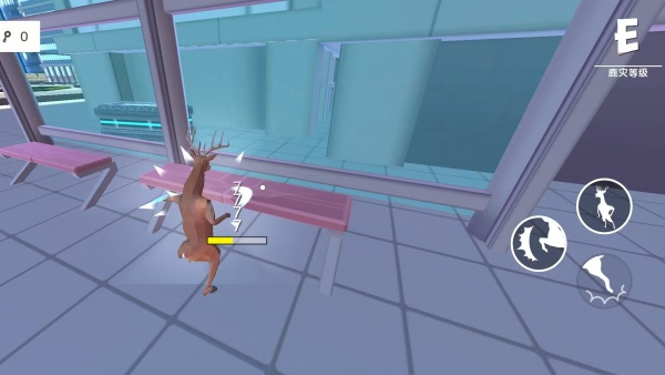 1、进入地图当中,控制小鹿四处探索城市,与其它的生物对抗。