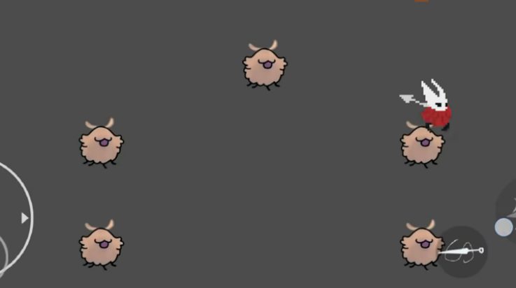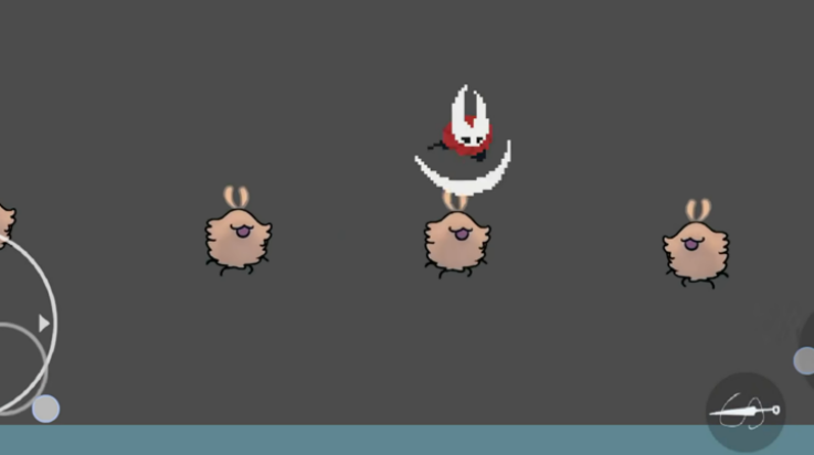 3、左下角摇杆控制角色移动,右下角按键执行跳跃与二段跳。