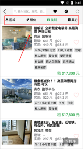 2、进入【住宅】页面,可以根据自身的需求进行筛选合适的地区/价格/类别等信息,来寻找合适的住房;