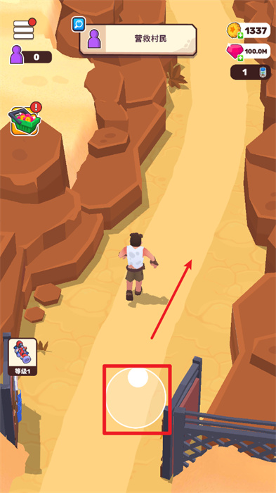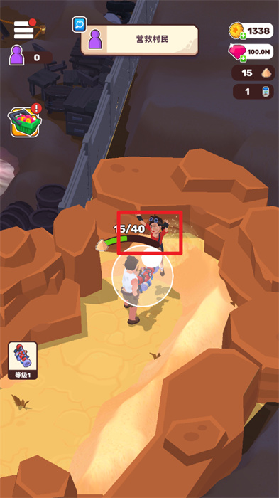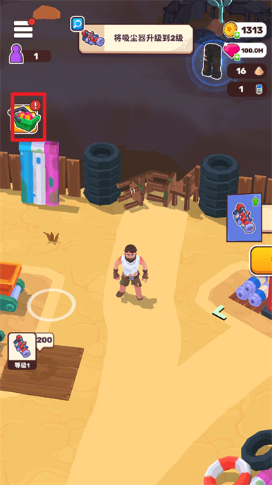 4、营救出村民之后,需要带着村民一起去往吸尘器的位置来进行吸尘器的升级,点击【升级】按钮即可;