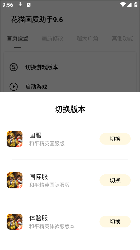 1、花猫画质助手10.2支持国服、国际服、体验服等多个游戏渠道,内置快捷启动与版本修复功能,可一键修复闪退、恢复默认画质,省去繁琐操作,兼容性全面升级。
