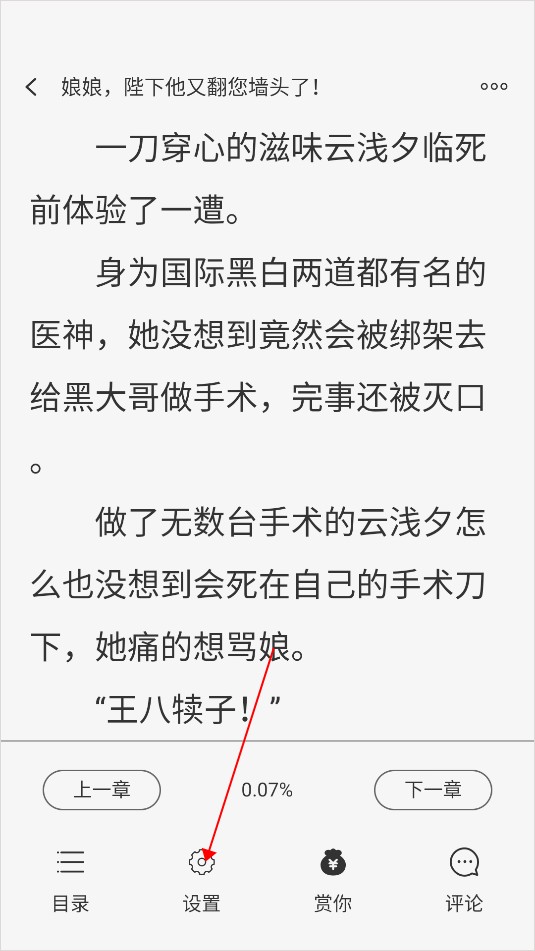 3、进入到阅读界面,点击屏幕中间触发菜单栏,再点击设置按钮;