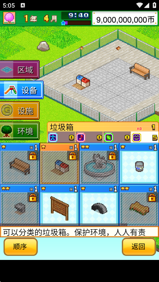 3、建筑设施主要分为环境、公共设施、游乐设备建设等。玩家通过招揽游客来赚钱,并进一步进行园区布局,提升设施、游客以及狗狗等级和属性。再通过大奖赛等方式获取稀有道具,建设稀有建筑。