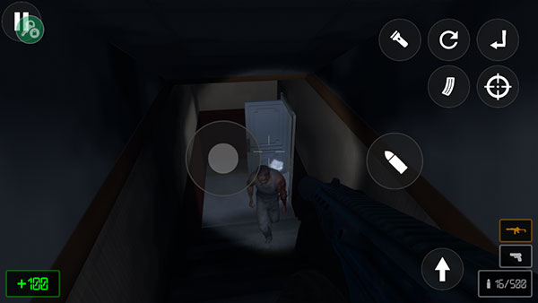 6、在下楼看到僵尸的时候,我们只需要使用枪械守住楼梯口即可;