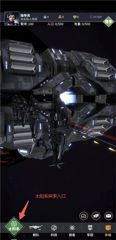 进入赛季地图后,即可看到您的母舰停泊在屏幕的中央,首先我们进入母舰,创建我们的第一个舰队