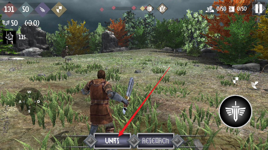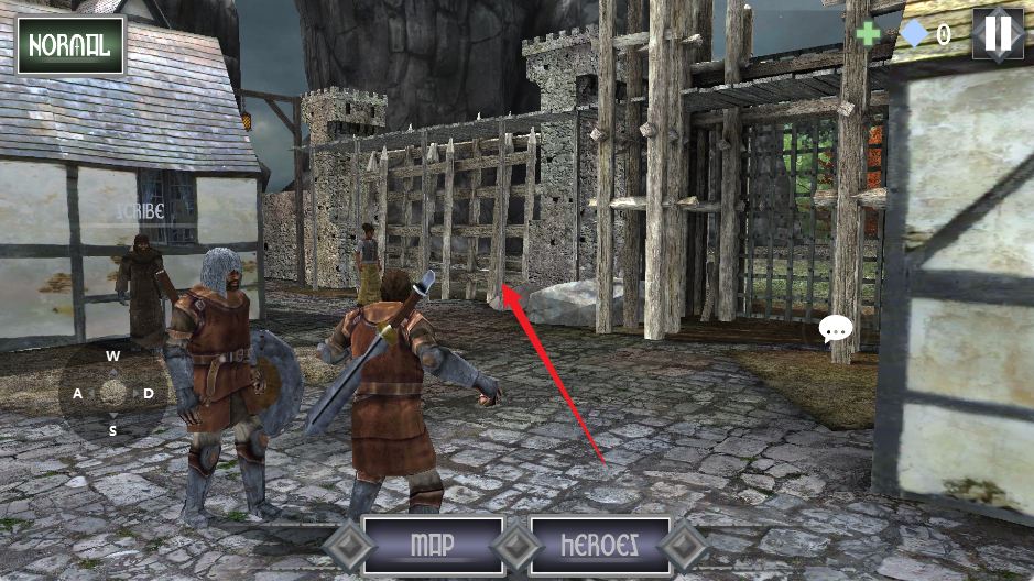 1、进入英雄与城堡2游戏后,先朝着城门标志所在的位置前进,游戏会从这里正式展开。