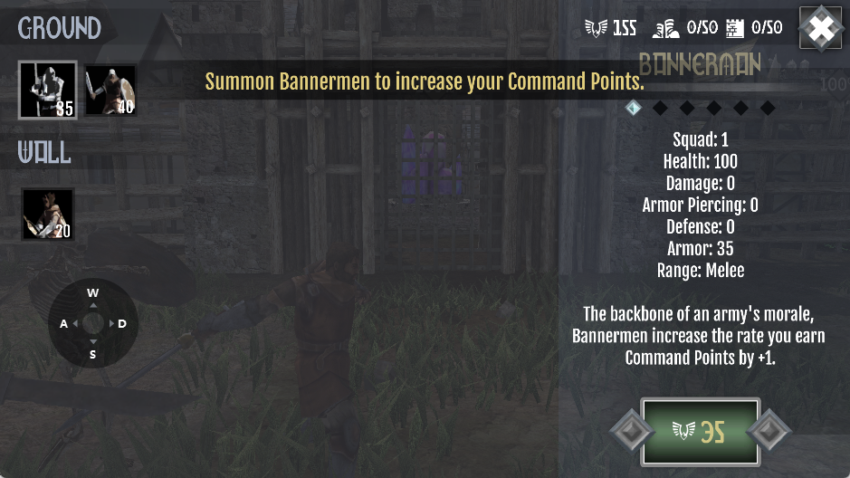 4、指挥点积累后,玩家需要合理消耗这部分资源,召唤步兵、弓箭手等单位加入战场,构建自己的小型队伍对抗敌潮。