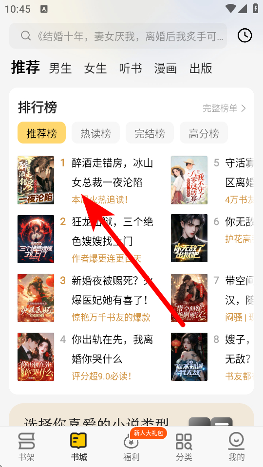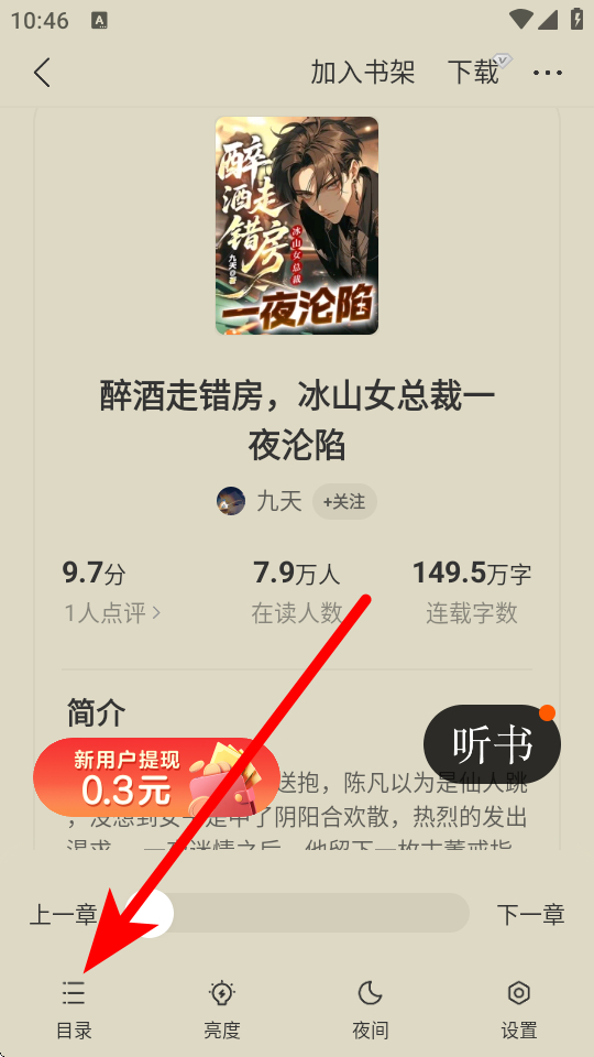 1、在追读小说书城页面,点击要查看的小说,进入小说详情界面。